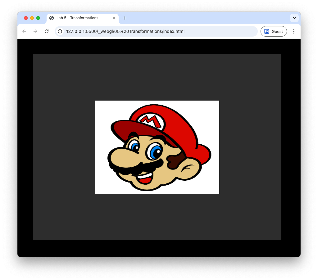 Create a folder called 05 Transformations and download index.html, transformations.js and webGLUtils.js to it. Open index.html in a web browser to check that the red triangle from Lab 3: Textures is displayed.