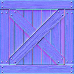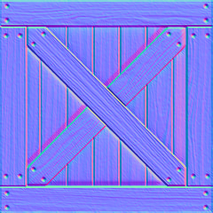 A normal map is a texture where the RGB colour values of each textel is used for the normal vector \(\vec{n} = (n_x, n_y, n_z)\) where \(n_x\), \(n_y\) and \(n_z\) values are determined by the red, green and blue colours values respectively. A normal map for the crate texture is shown in Fig. 95.