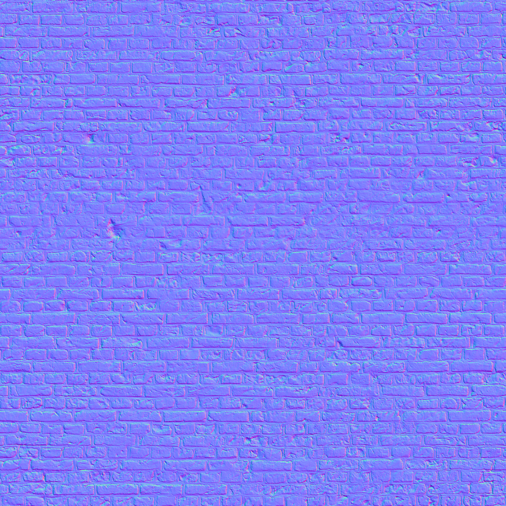Normal maps tend to have a blue tinge to them because the normal vectors are pointing away from the surface so the \(z\) component dominates. Any red on a normal map suggests that the normal is pointing to the right and green suggests the normal is pointing upwards.