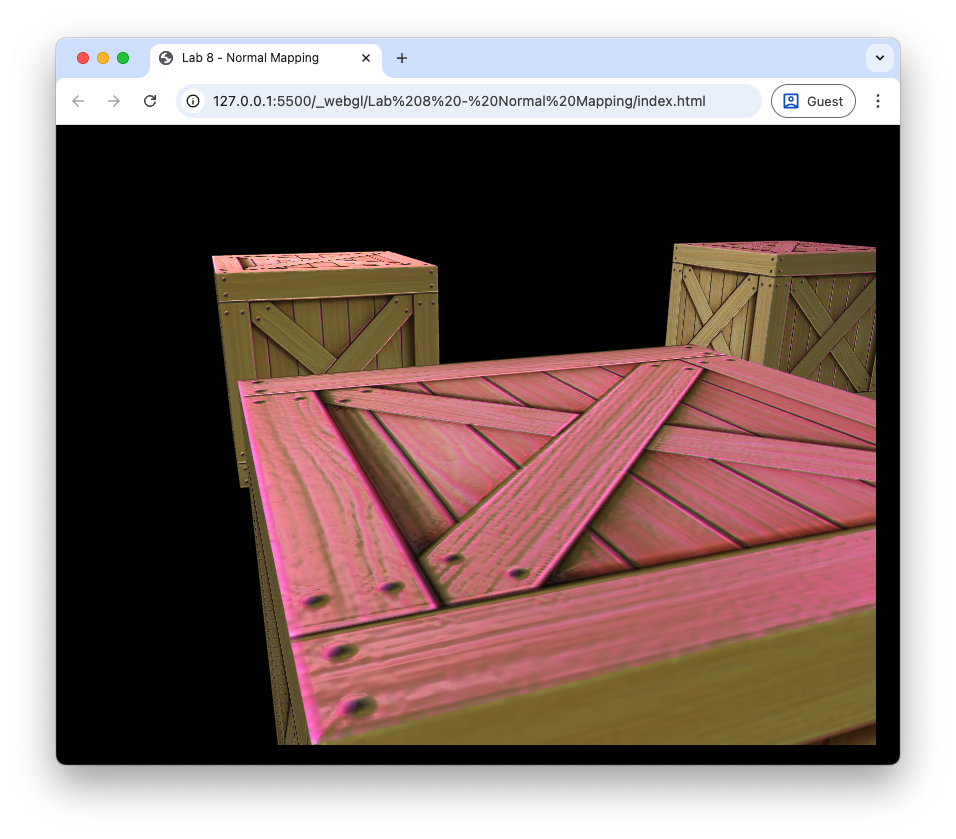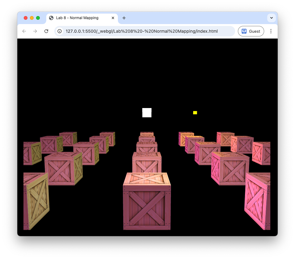 Create a copy of your Lab 8 Lighting folder, rename it Lab 9 Normal Mapping, rename the file lighting.js to normal_mapping.js and change index.html so that the page title is “Lab 9 - Normal Maps” it uses normal_mapping.js.